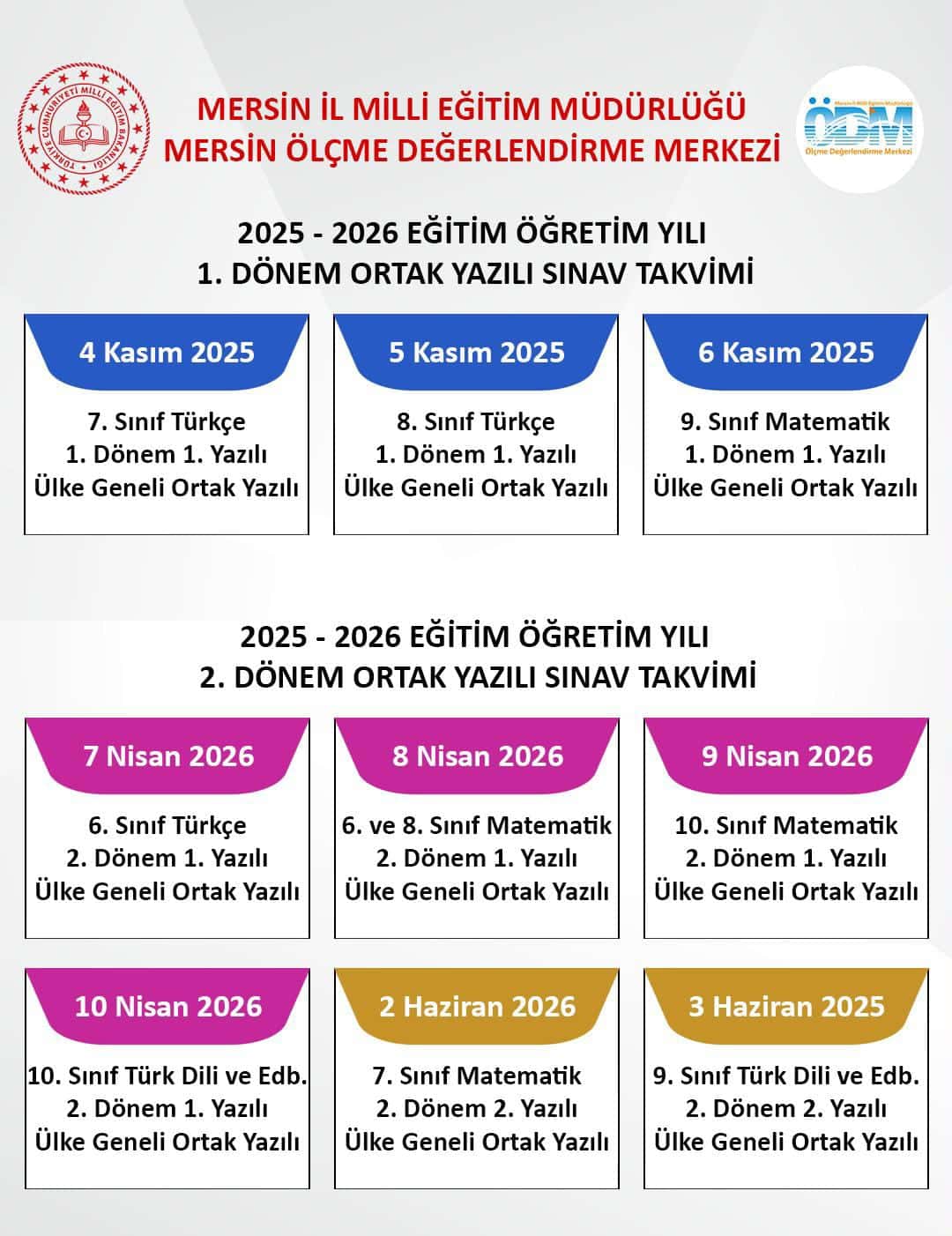 2025-2026 eğitim öğretim yılı ortak yazılı sınav tarihleri açıklandı.