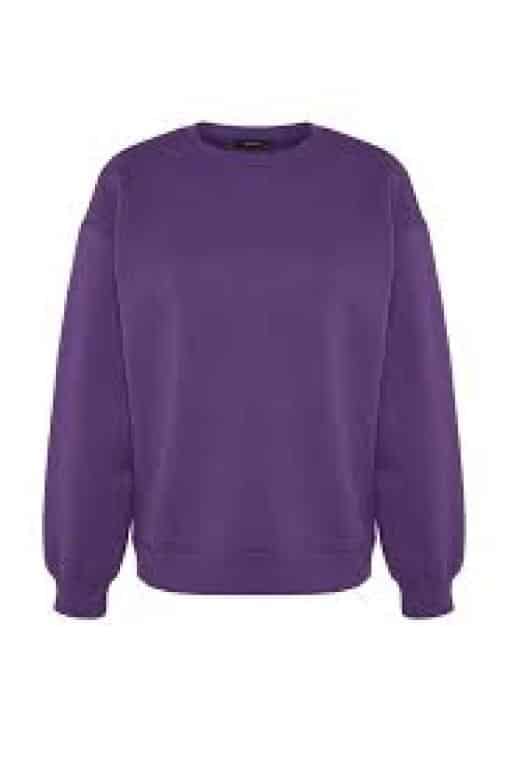 TİŞORTÜN ÜSTÜNE MOR RENK YAZISIZ DESENSİZ UZUN KOLLU BİSİKLET YAKA TİŞÖRT, TUNİK VEYA KAPŞONLU SWEET (KAPŞONU, ÖN KISIM FERMUARLI YA DA DÜZ OLABİLİR.)